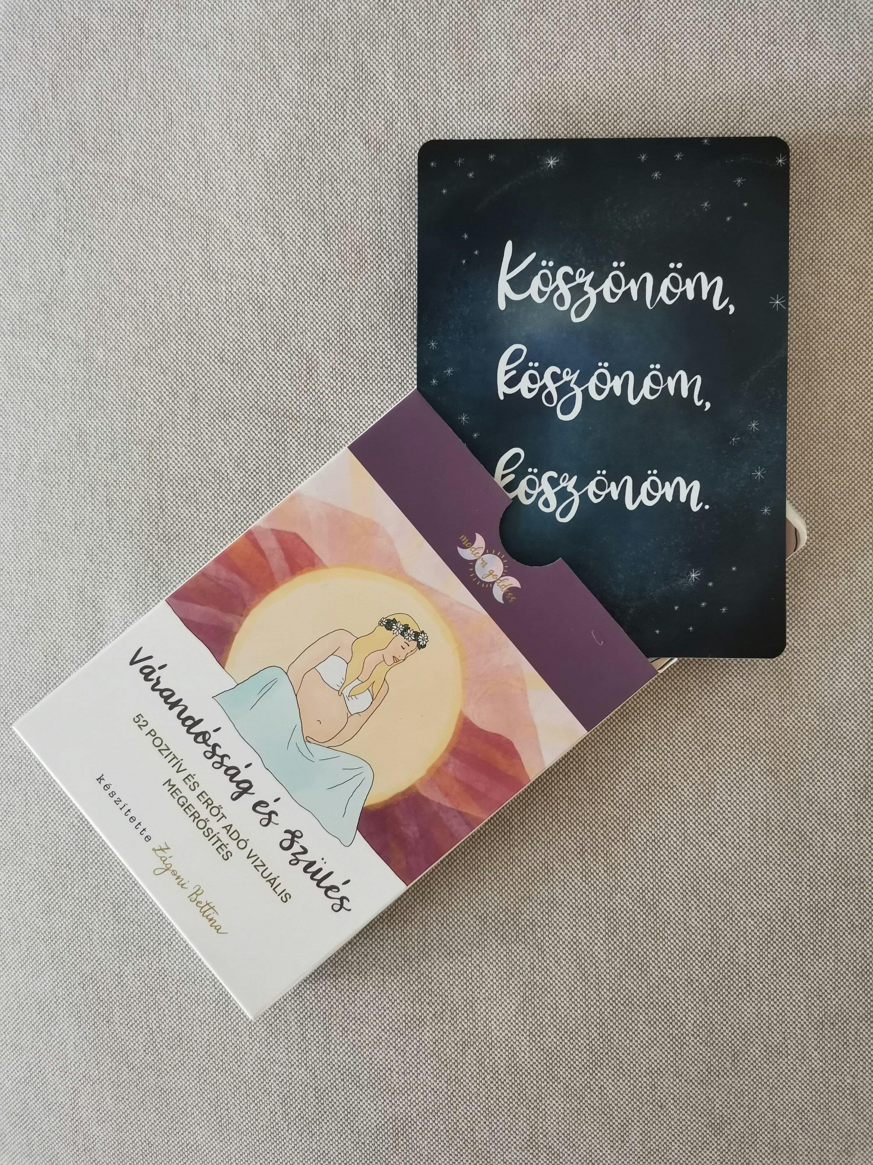 Tina összes kártya csomagja meg van. A 2. várandósságom nem volt probléma mentes. Amikor az önmagadba, a kisbabádba és egy felsőbb erőben lévő hit marad, hatalmas támasz volt nap mint nap ránézni a Várandósság kártyacsomag bizonyos lapjaira. Ennek a történetnek happy end lett a vége, ráadásul otthonszüléssel, amelynek során szintén nagy hasznát vettem a megerősítéseknek.